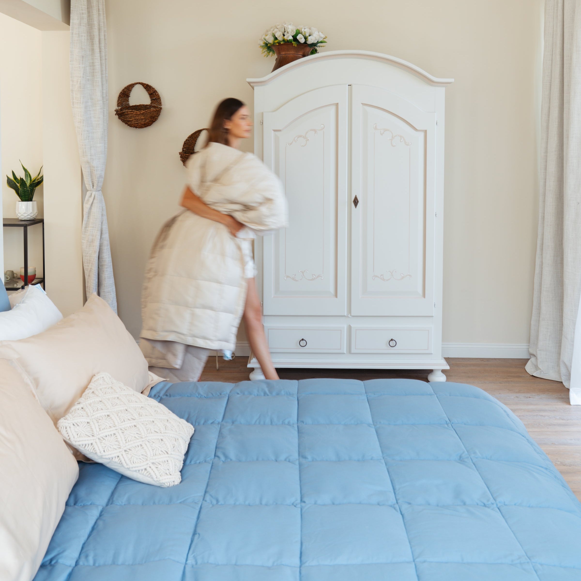 Ho abbinato anche il loro copripiumino in raso di cotone e devo dire che l’insieme è davvero sublime: il letto sembra quello di un hotel di lusso e il riposo è diventato un vero momento di piacere.